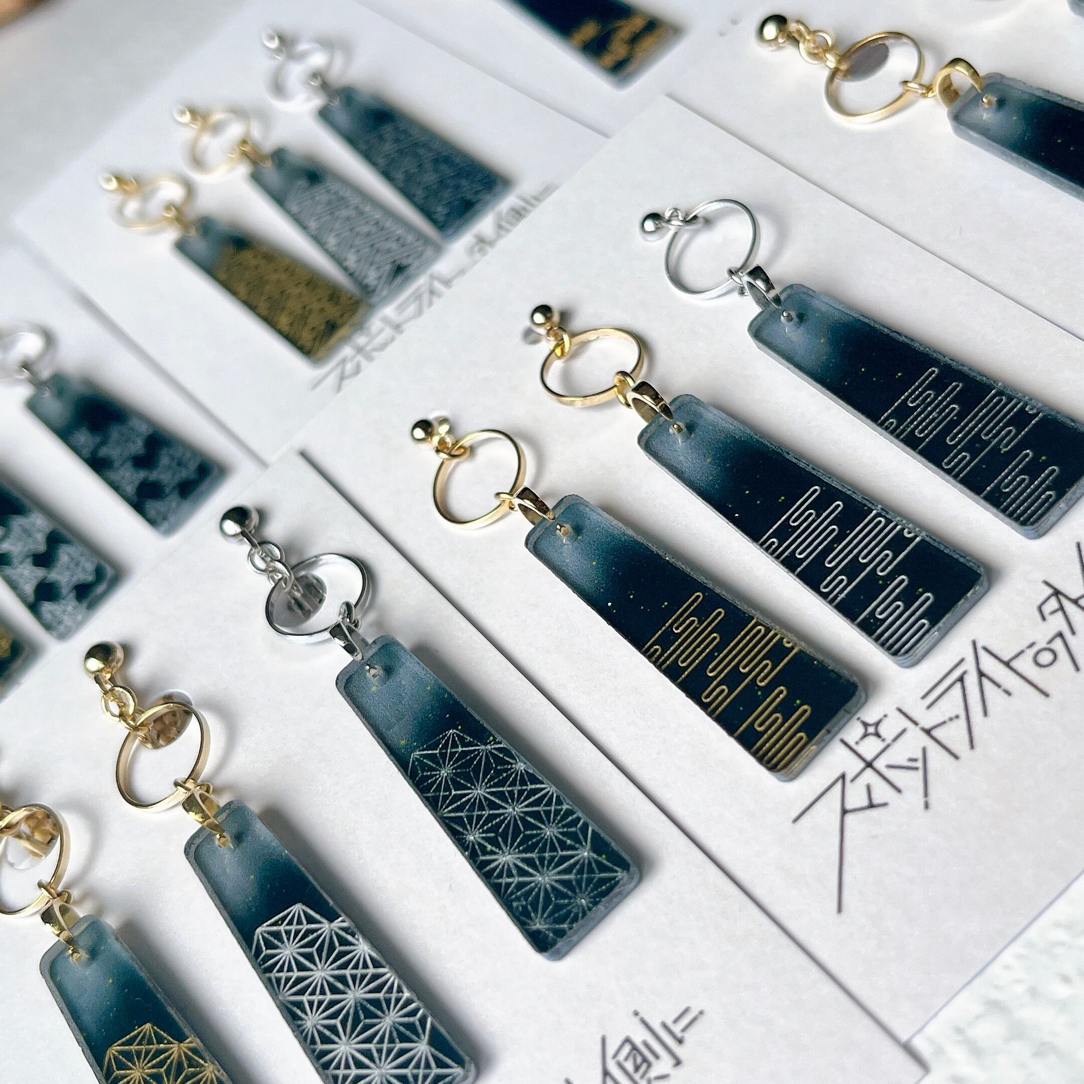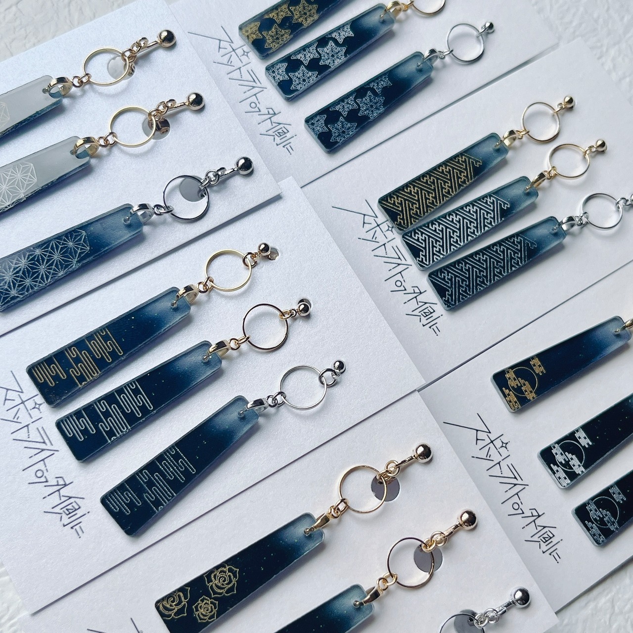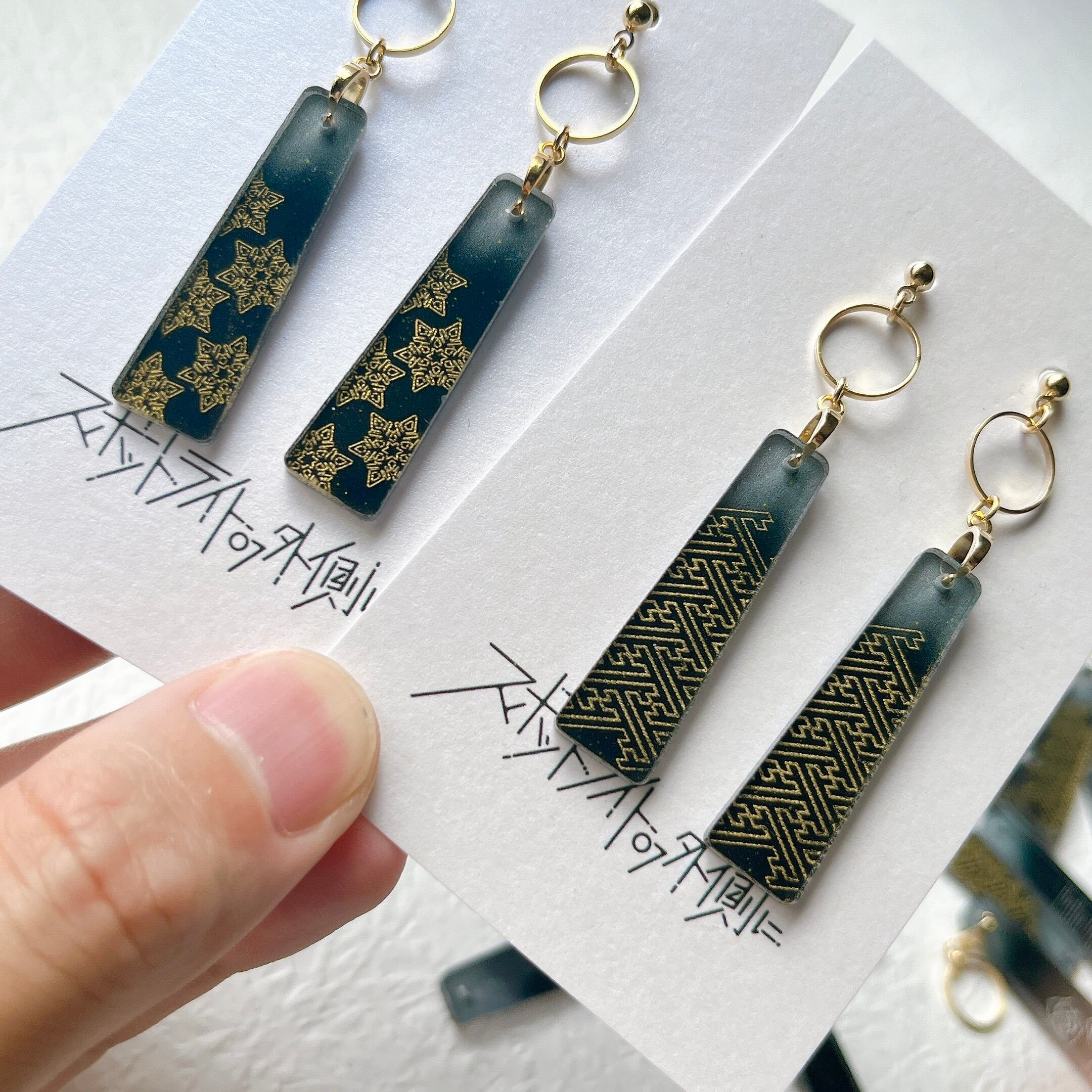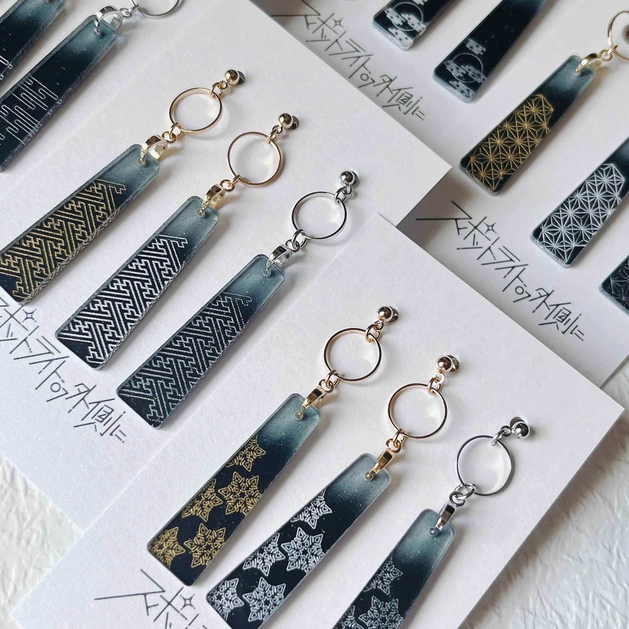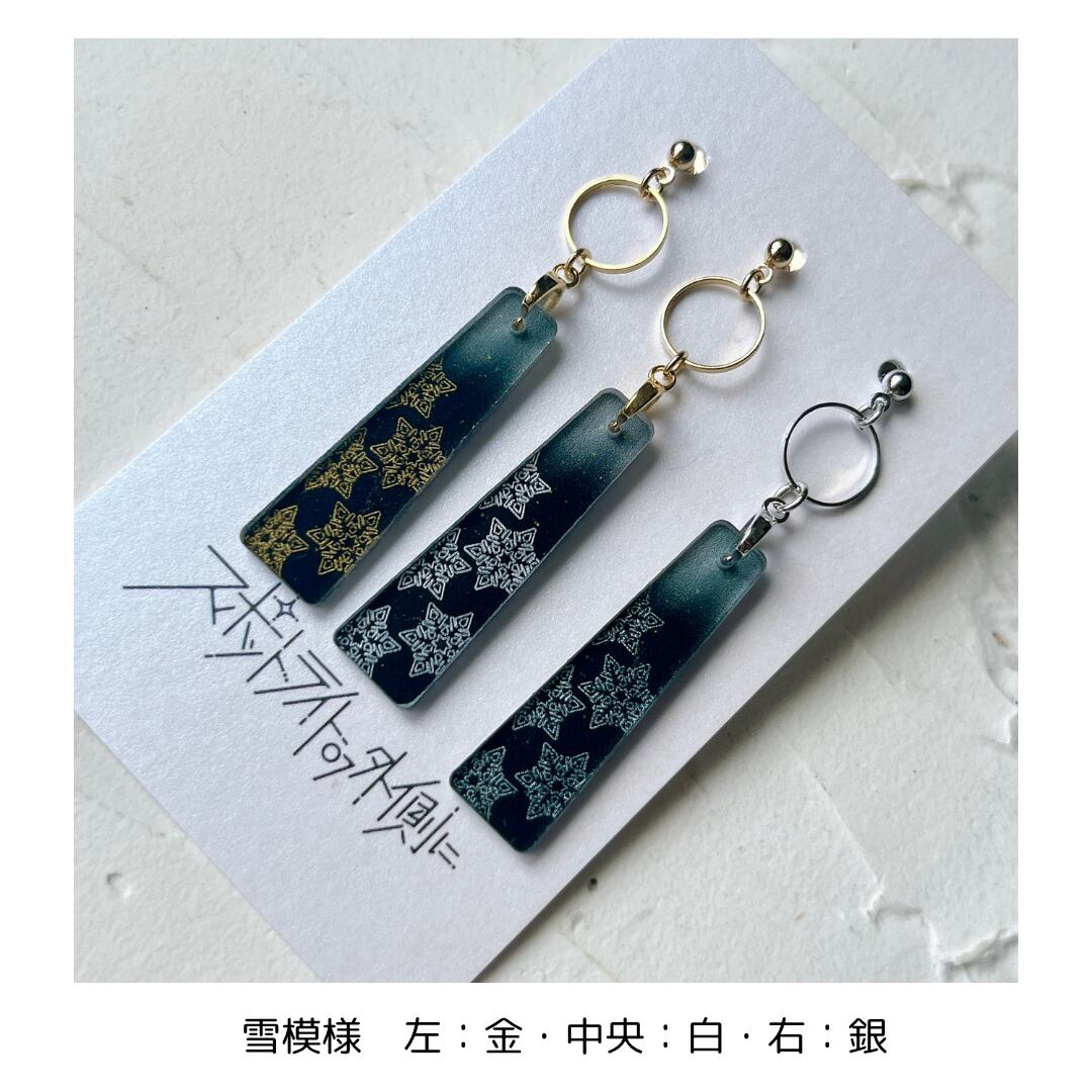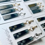 日本の伝統模様と、日々の静かな美しさをアクリルに彫刻したアクセサリー「思い出」。