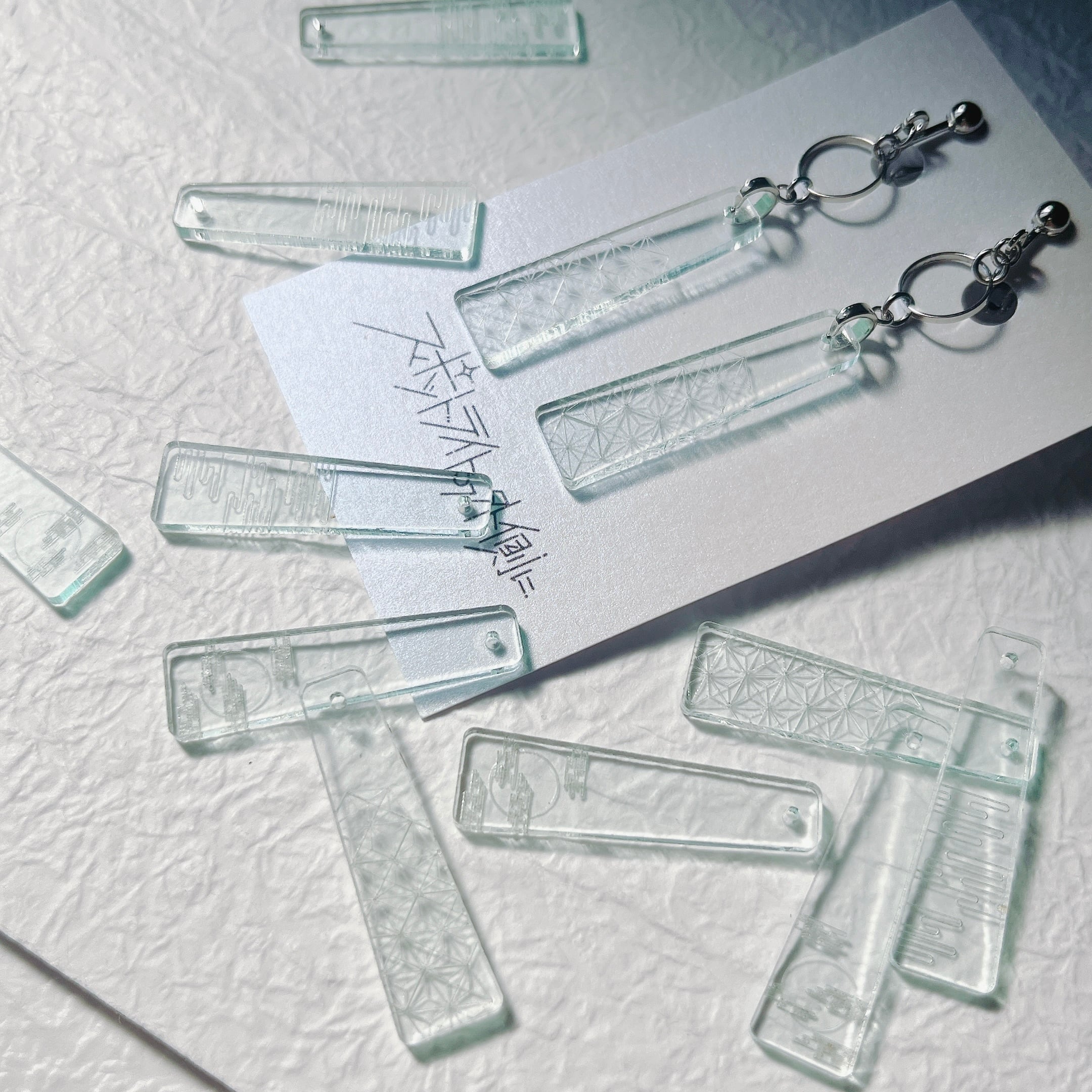 涼しげな色のアクリルに、やさしい記憶を彫刻しました。