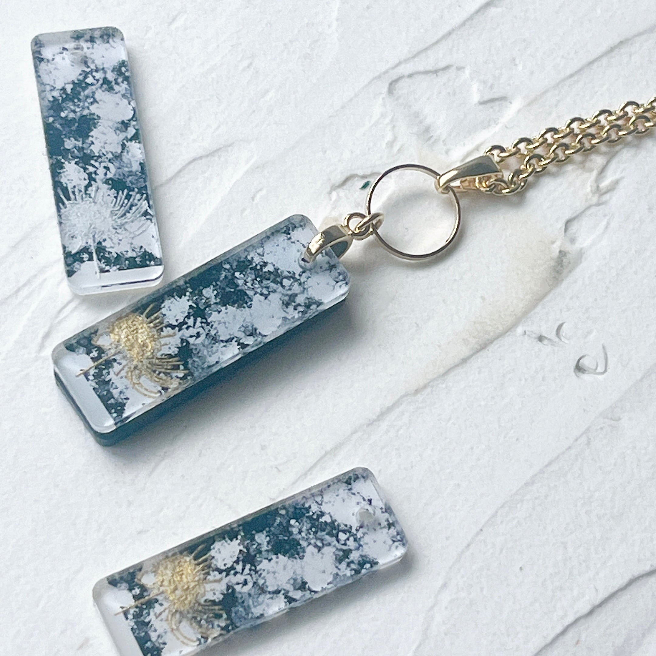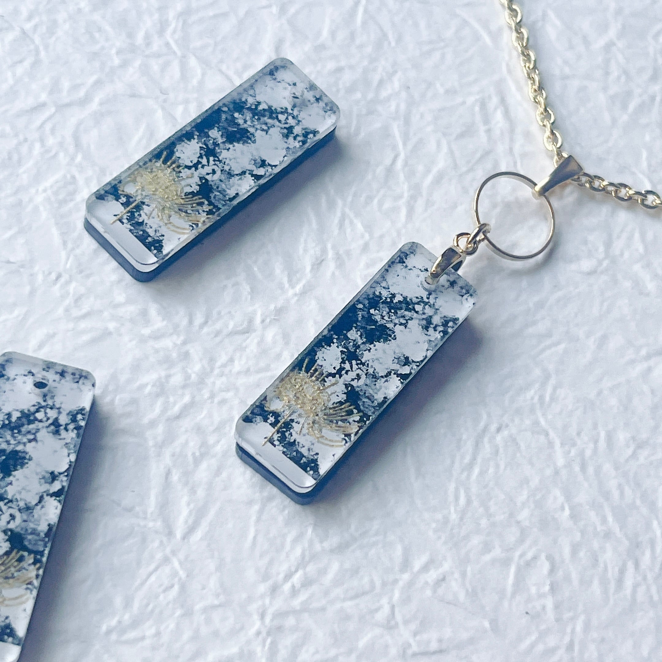 繊細なラインと色彩が首元で揺れ、さりげなく日常を彩るアクセサリーです。