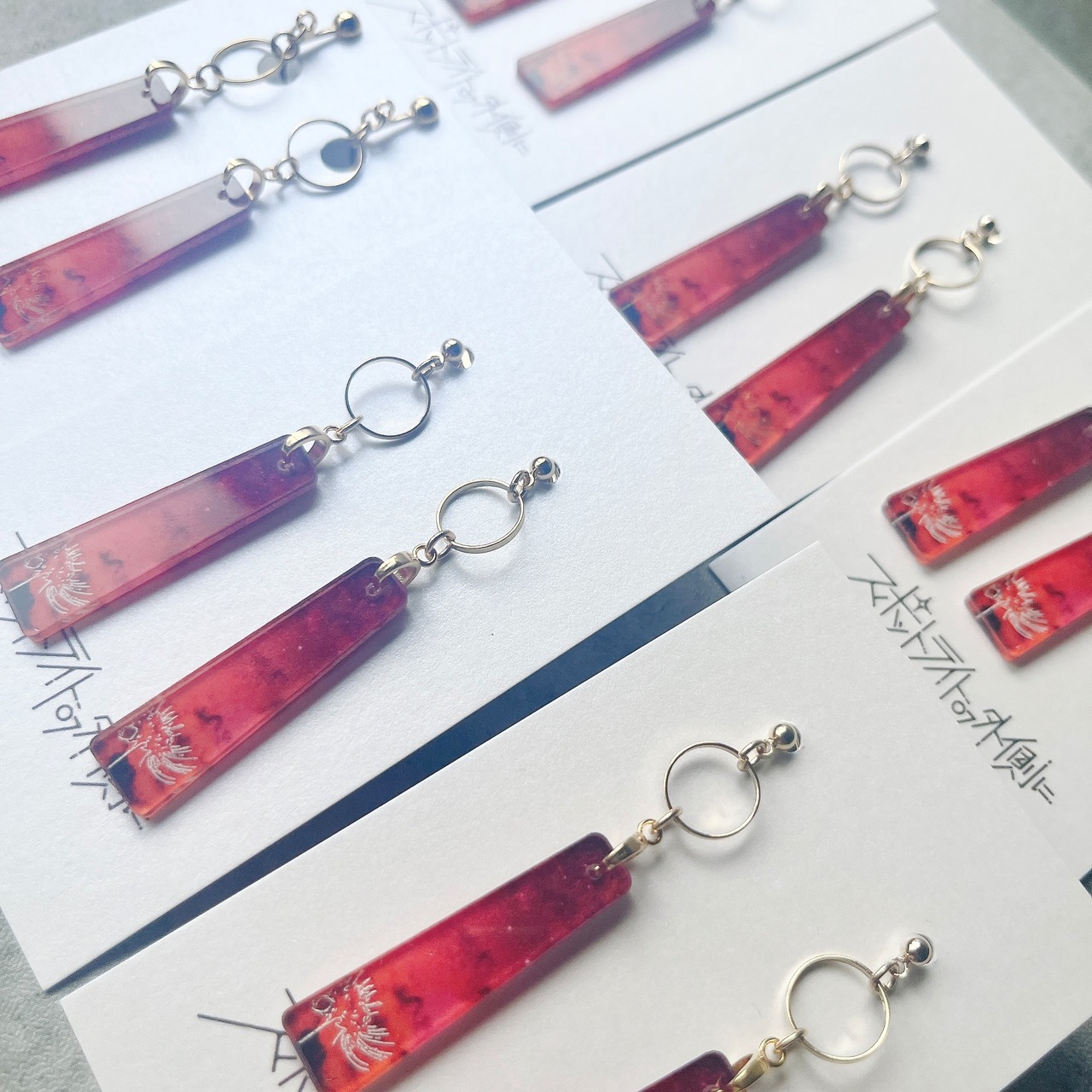思い出:彼岸花 赤焼け 【和風 アクリル ピアス・イヤリング】