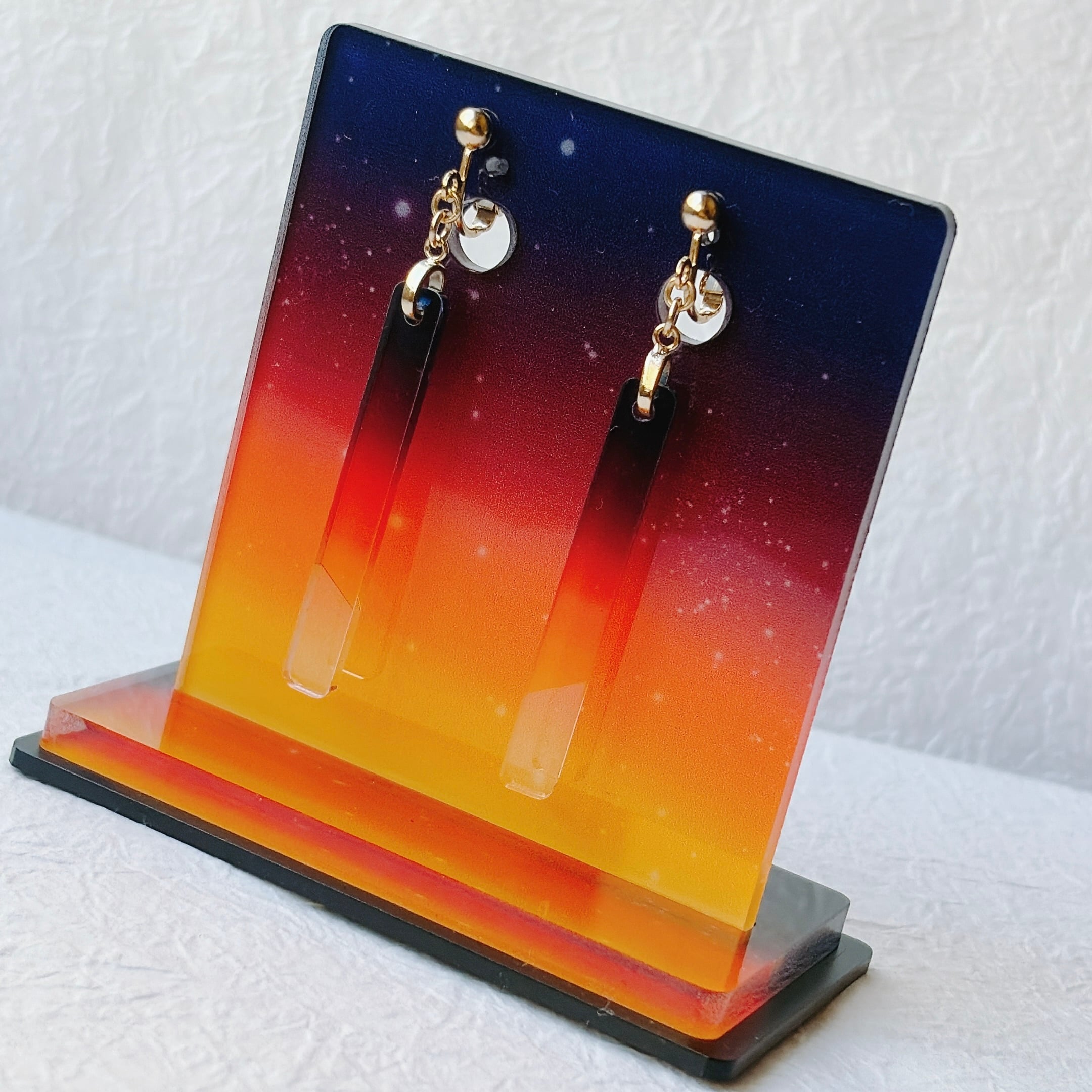 耳飾りと同じ空模様で仕立てた専用スタンドです。