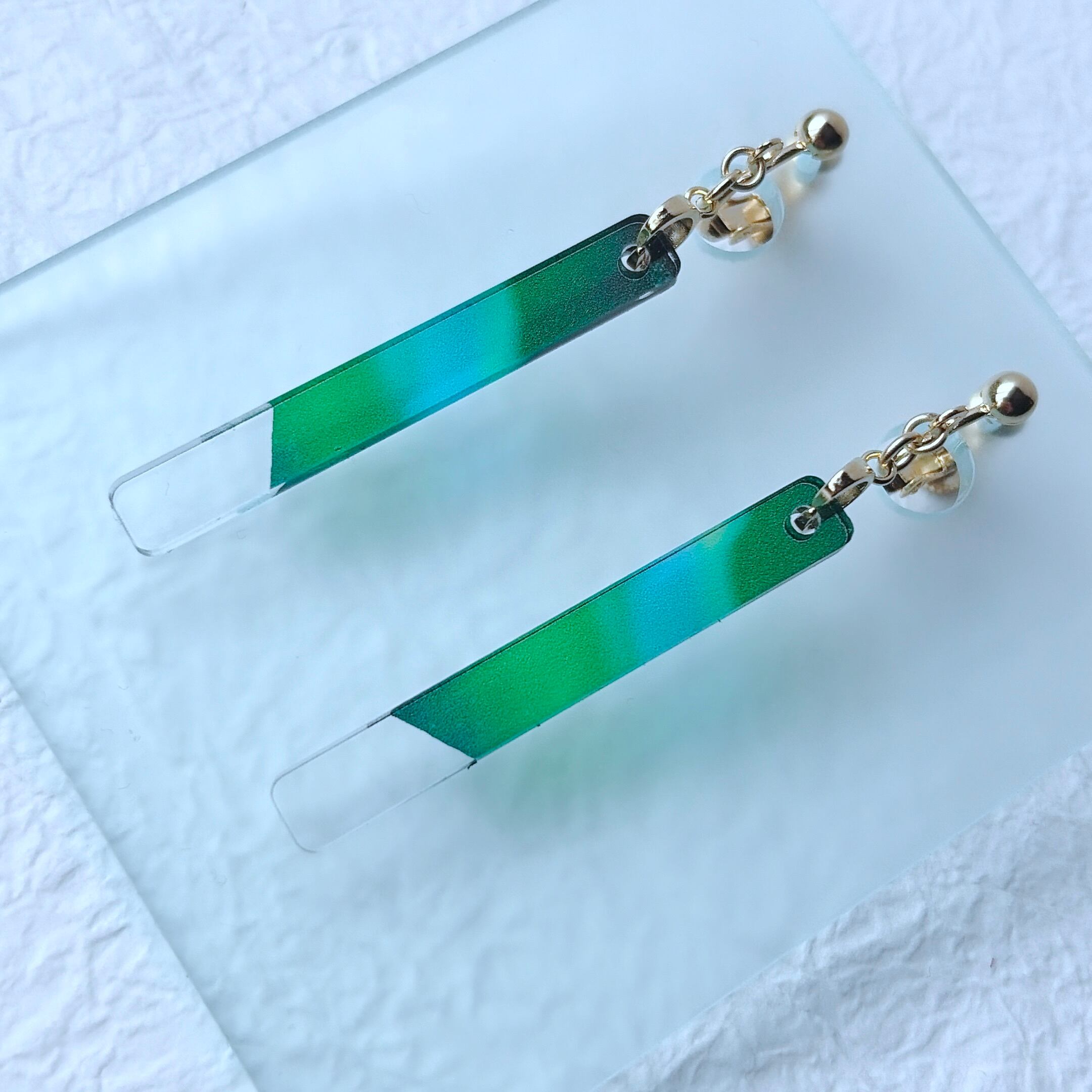 情景 オーロラ 緑【アクリル ピアス・イヤリング】