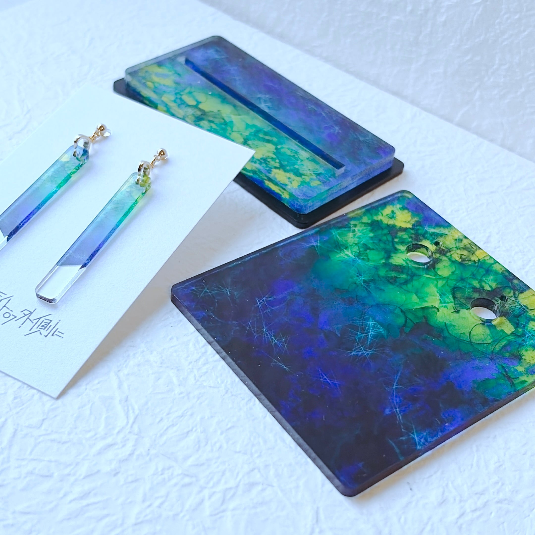 耳飾りと同じ空模様で仕立てた専用スタンドです。