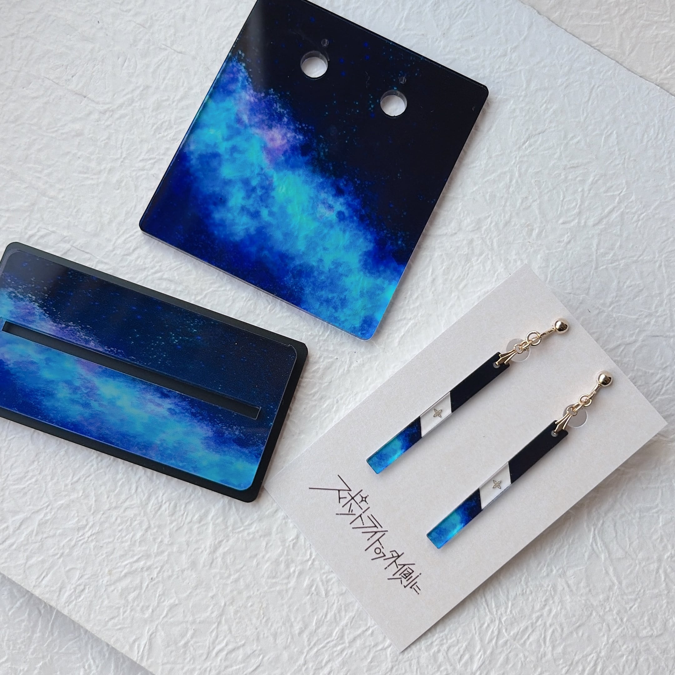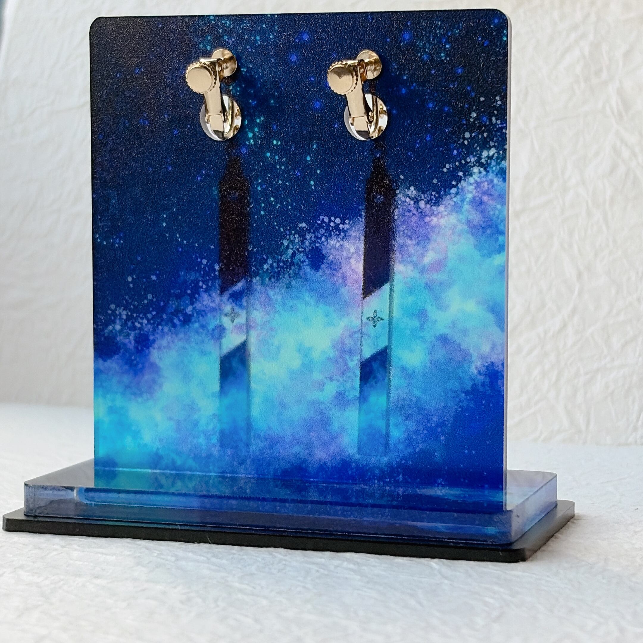 耳飾りと同じ銀河の情景で仕立てた、鑑賞用の専用スタンドです。
