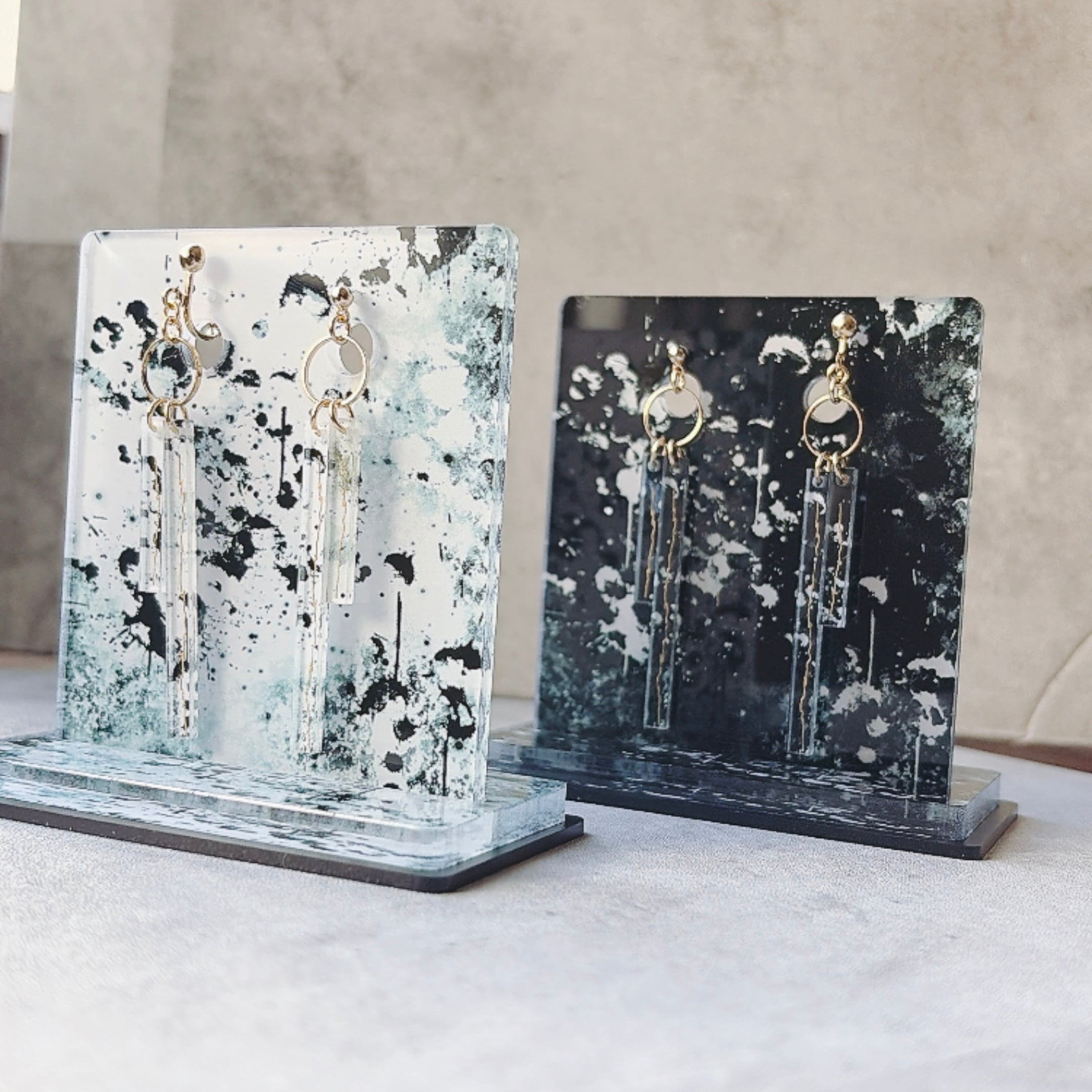 本作品は「耳飾り単品」または「専用スタンド付きセット」からお選びいただけます。