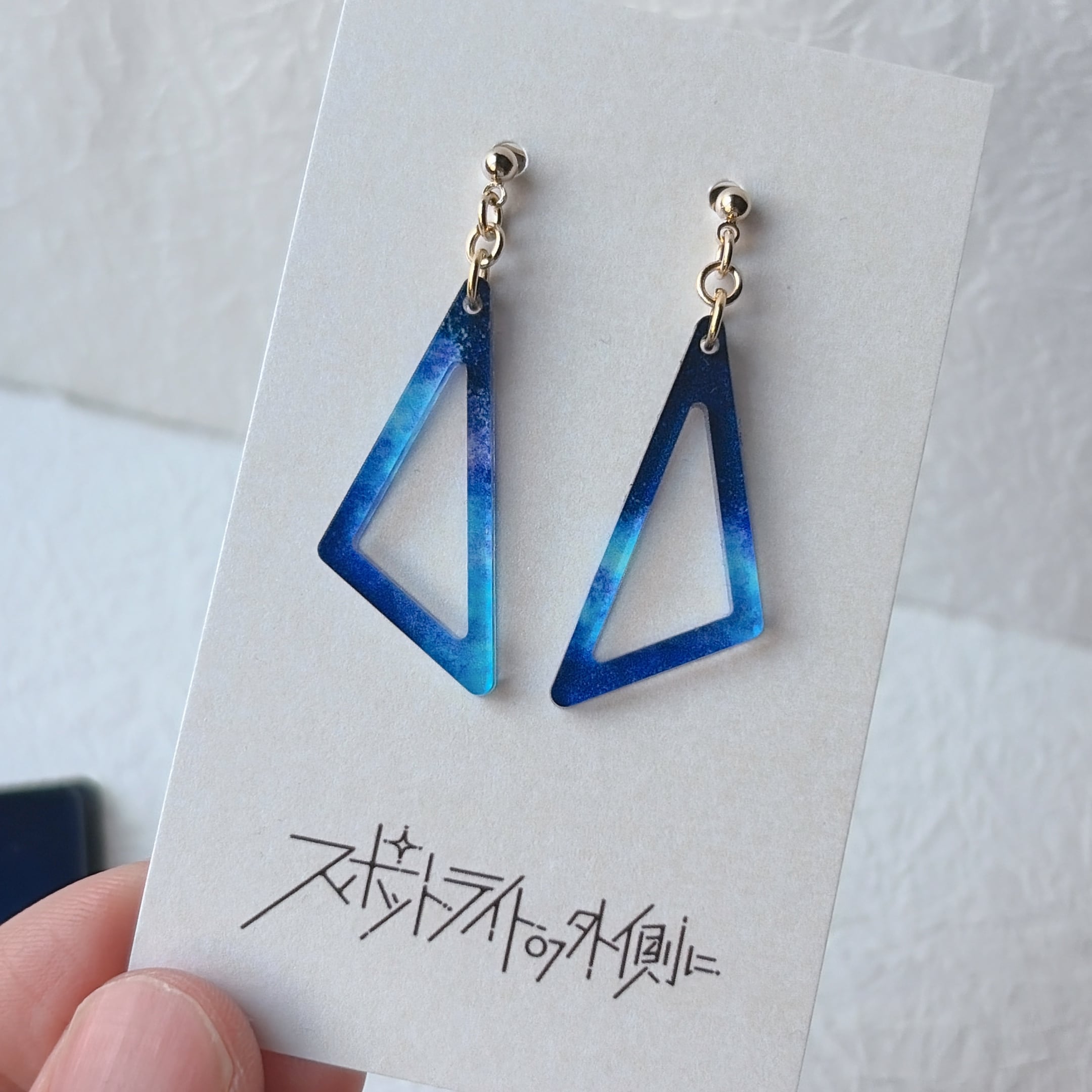 厚さ2mmの透明アクリルを、縦35mm × 横15mmな形に仕立てた耳飾りです。