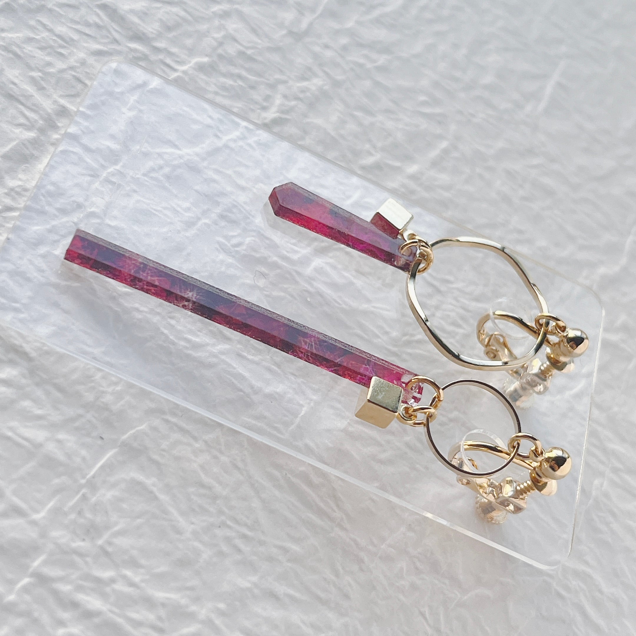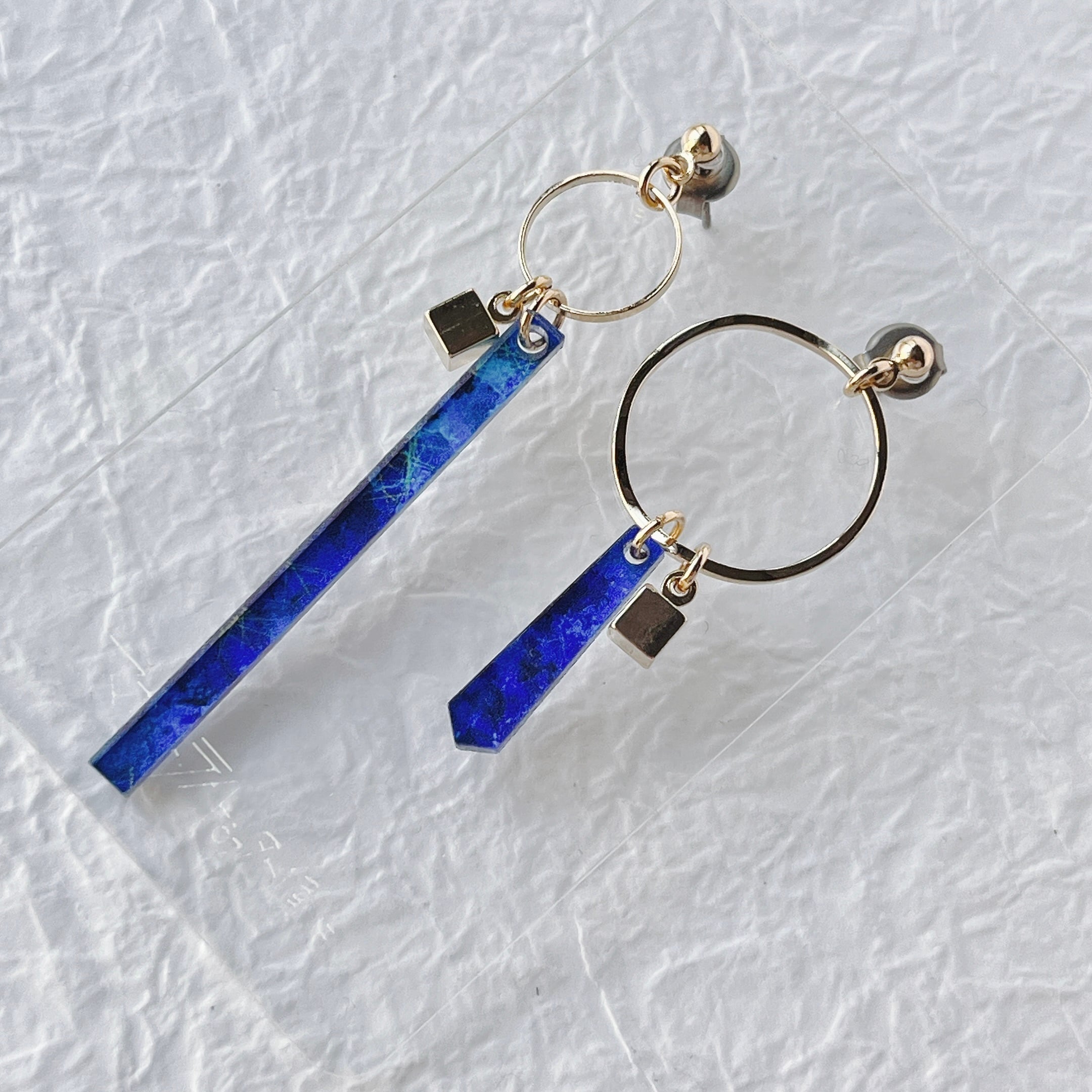 色をそっと閉じ込めたような、アシンメトリーの耳飾り「色のカケラ」です。